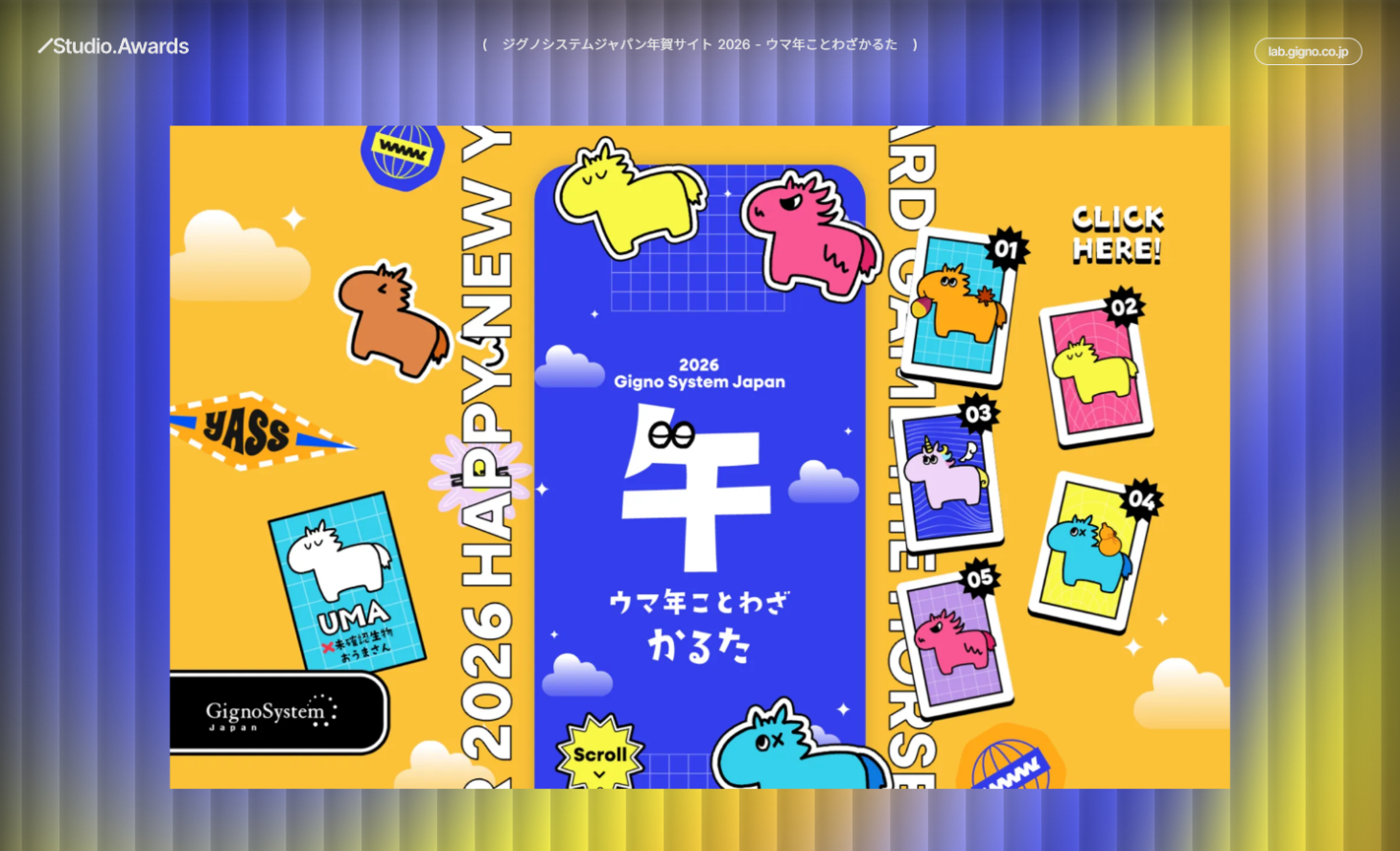 当社の2026年の年賀コンテンツ『ジグノシステムジャパン年賀サイト 2026 - ウマ年ことわざかるた』が「Studio Design Award 2025」にノミネートされました。