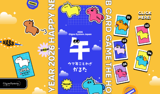 ジグノシステムジャパン年賀サイト 2026 - ウマ年ことわざかるた (デザインメディアねるねるの記事ページへ遷移します)